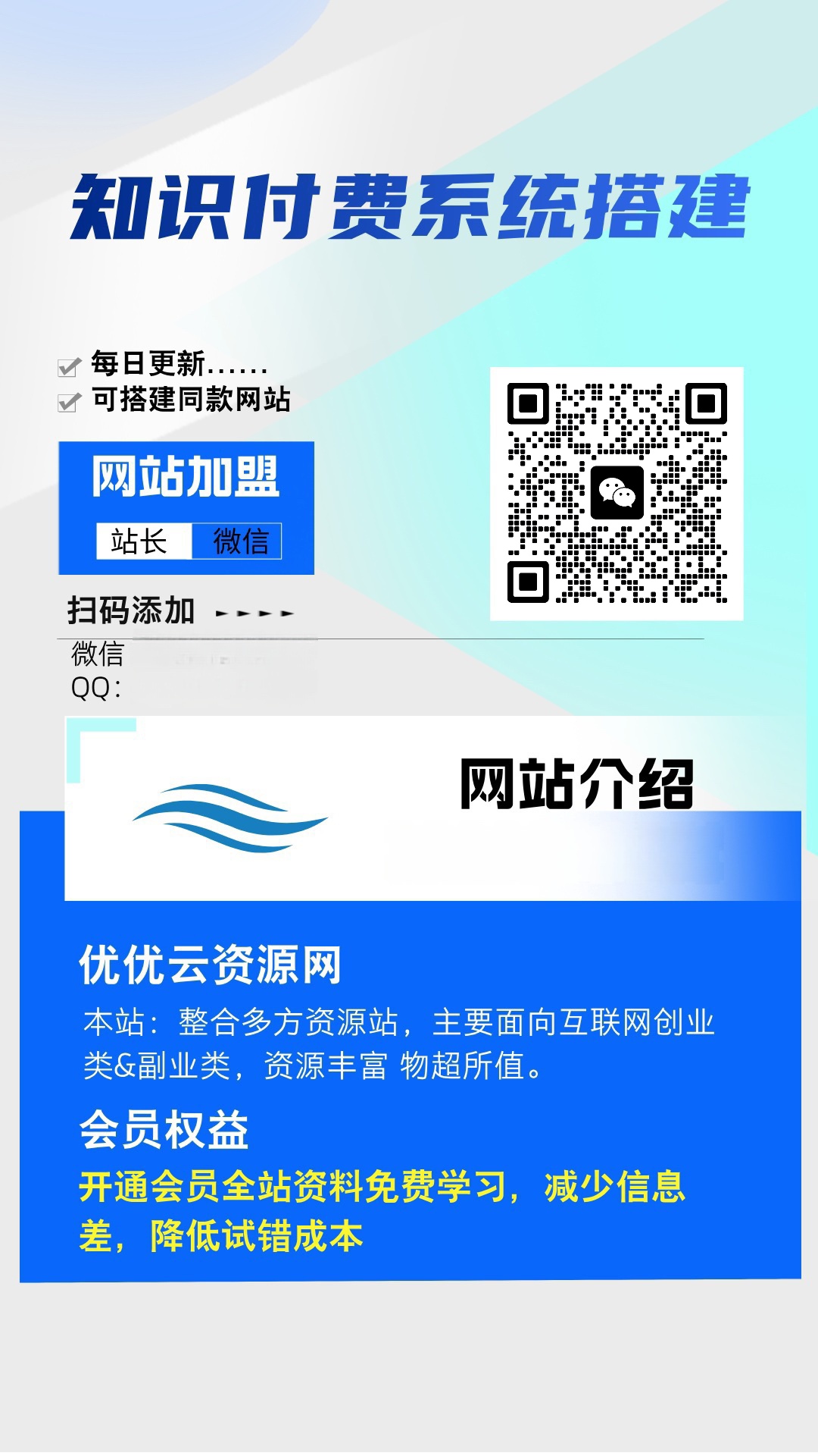 加盟XXX网创,加盟搭建同款知识付费资源网站,实现长期稳定被动收入~